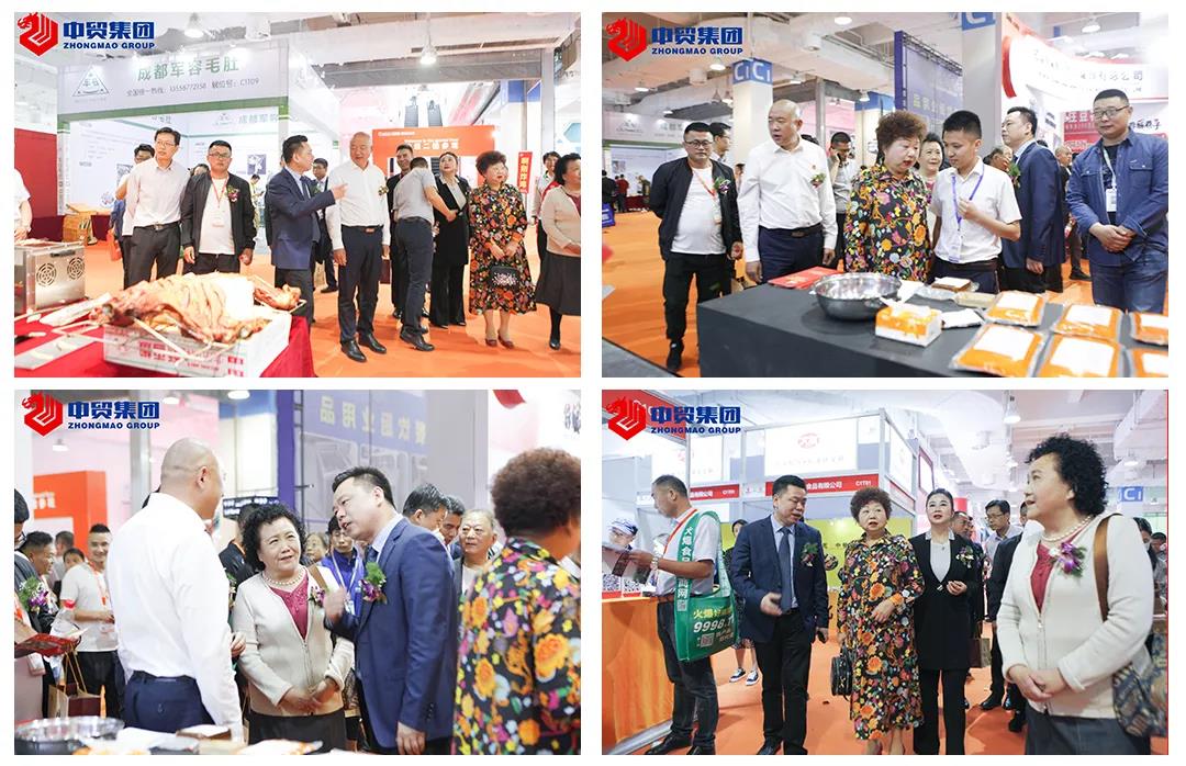展會現場火鍋產業相關協會領導在中貿國際會展集團董事長杜磊先生陪同下觀看我們展會的精美展品。