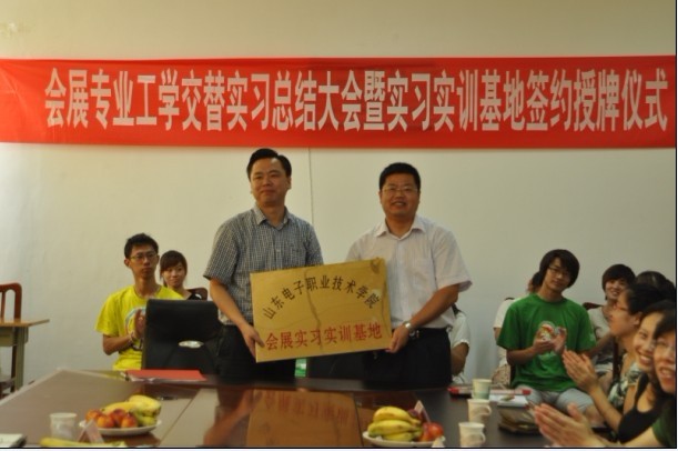 2012年6月26日下午,中貿(mào)國際與山東電子職業(yè)技術(shù)學(xué)院舉辦了會展策劃與管理專業(yè)“工學(xué)交替”實習(xí)總結(jié)大會暨校外實習(xí)基地簽約授牌儀式。山東省會展業(yè)協(xié)會常務(wù)副秘書長燕飛、山東中貿(mào)國際經(jīng)濟(jì)貿(mào)易推廣服務(wù)中心主任杜磊及三位項目經(jīng)理應(yīng)邀出席,山東電子職業(yè)技術(shù)學(xué)院王協(xié)瑞副院長、管理系梁會亭主任及部分教師、輔導(dǎo)員和會展專業(yè)學(xué)生參加了此次會議。